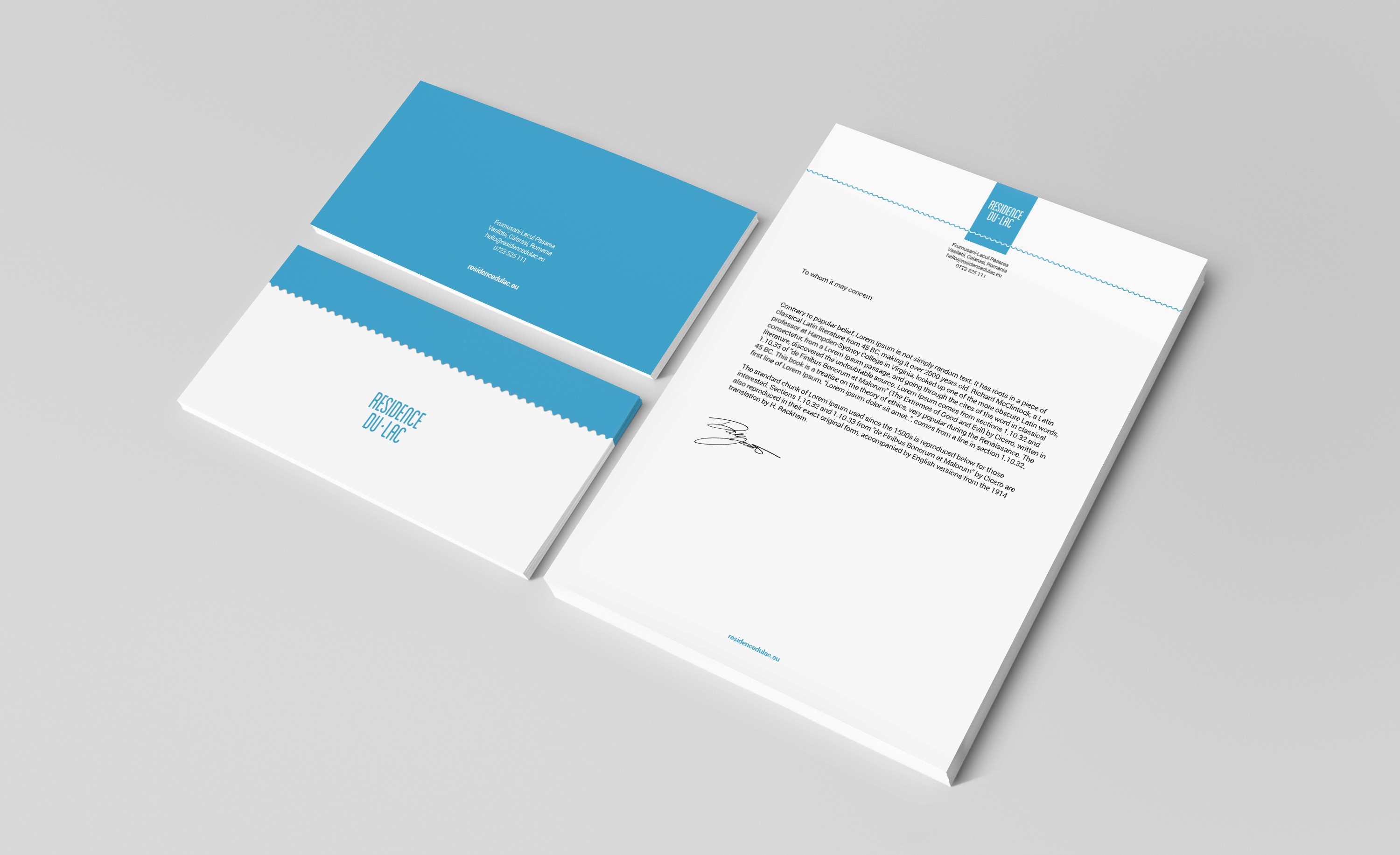 Residence du Lac is a residential complex located by the lake, just outside Bucharest. The identity needed to reflect not just the place, but the feeling that comes with it: calm, balance, and a slower rhythm of life.