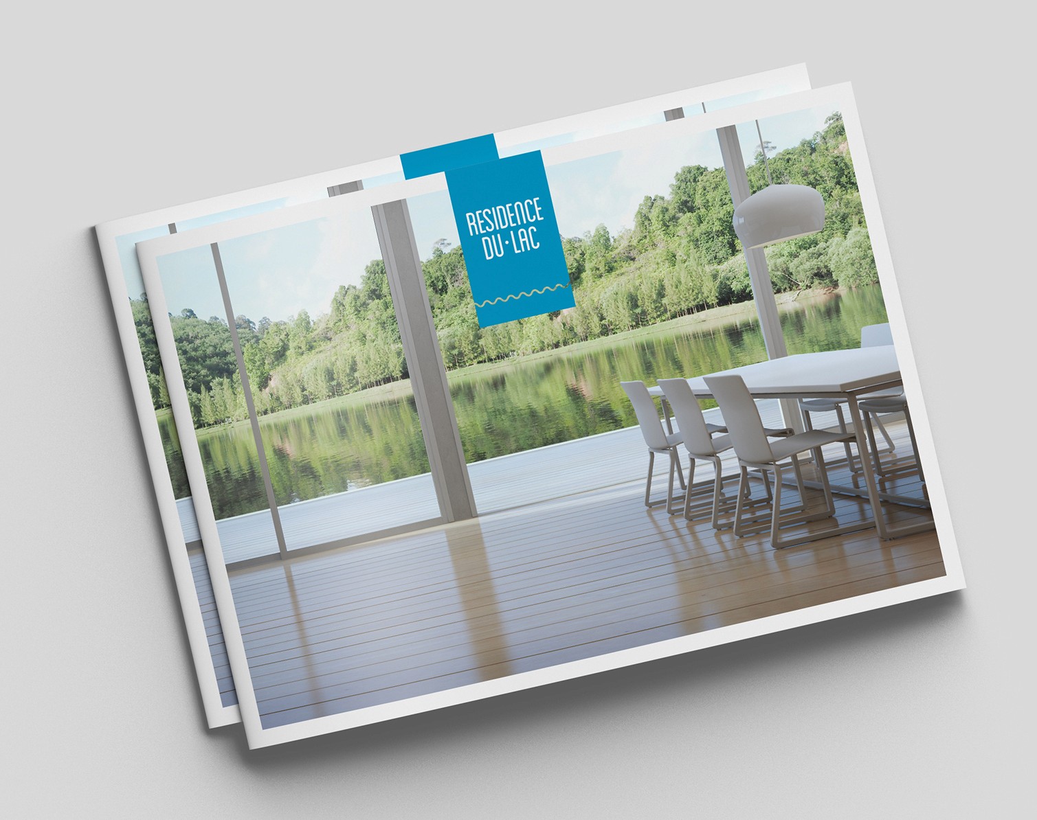 The concept was built around simplicity. A clean typographic approach paired with a subtle graphic element inspired by water. The wave becomes a quiet signature, a reference to the lake without feeling literal or decorative. The color palette follows the same logic. Soft blues and neutral tones reinforce a sense of calm and openness.